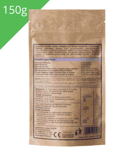 Zawarta w nawozie chityna sprzyja rozwojowi pożytecznych mikroorganizmów glebowych, które uczestniczą w naturalnych procesach zachodzących w glebie.